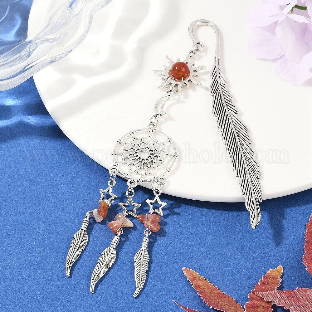 Закладки из натурального южного красного агата и сердолика, плетеная сетка из сплава с закладками из перьев, солнце и луна и звезда