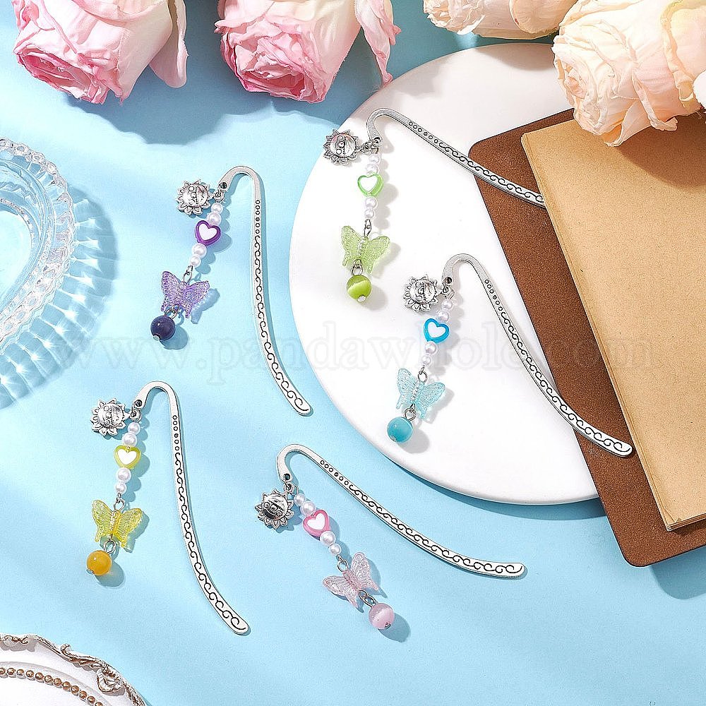 Закладки с крючками из сплава, бабочка акриловые и круглые бусины кошачий глаз подвески закладки