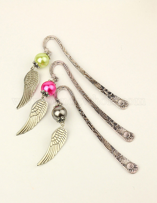 Мода закладки тибетского стиля, с имитацией жемчуга акриловых бусин и подвески крыла тибетского стиля, 120 мм