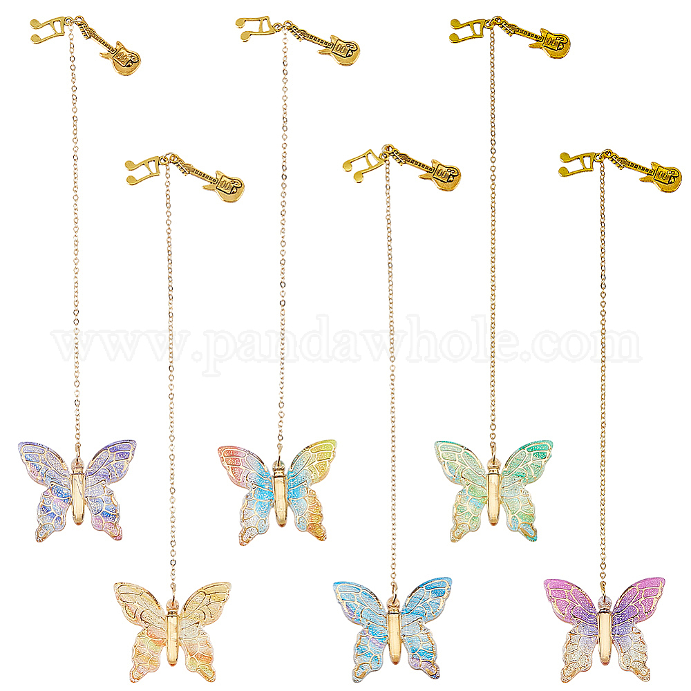7шт. бабочка акрил и сплав музыкальная нота гитара подвеска закладка, с латунным кабельных цепей