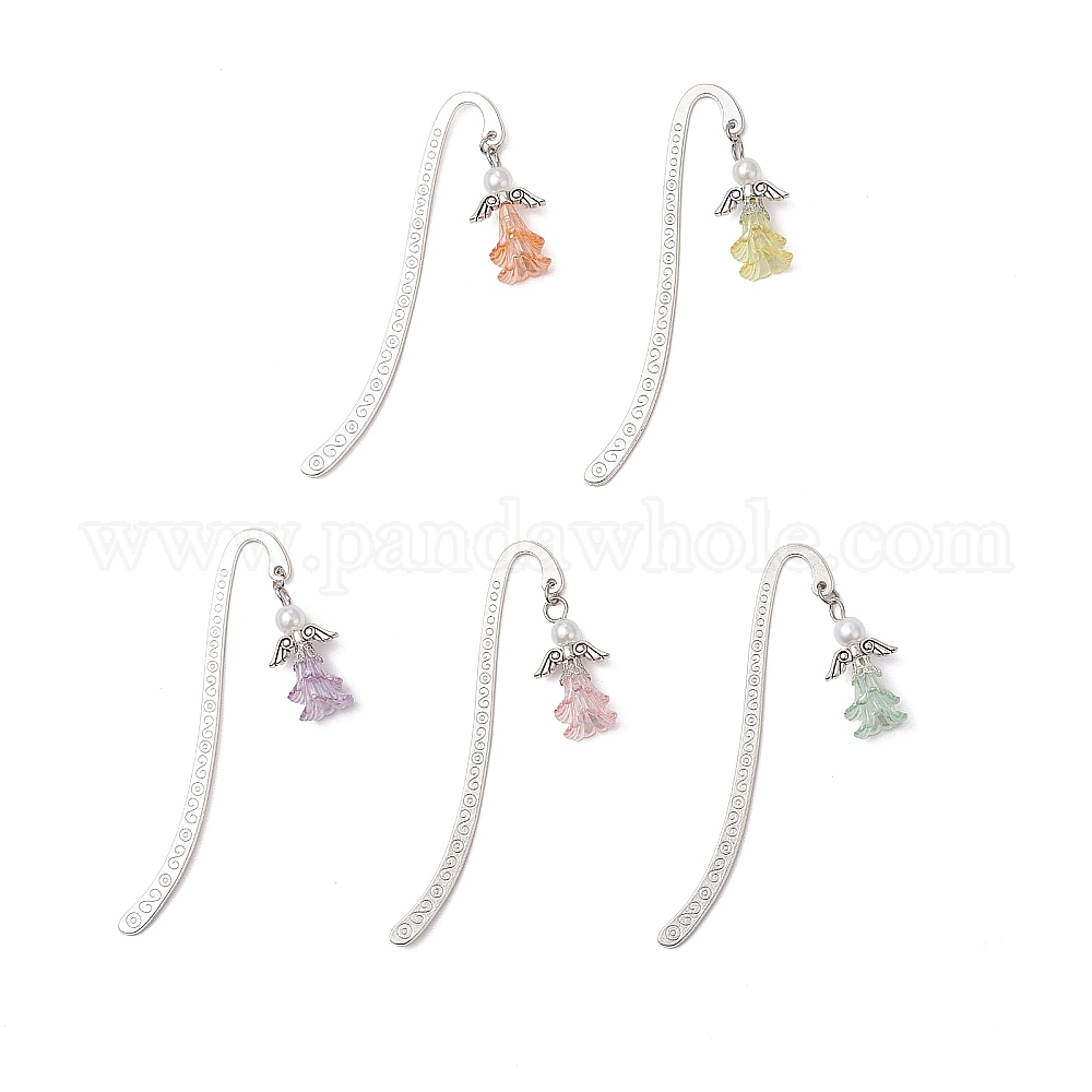 5 Закладки из сплава в тибетском стиле, цветок с ангелом, с абс пластиком имитация жемчуга и акрила