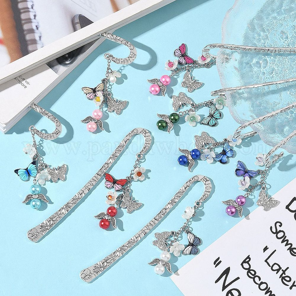 5 закладка из сплава шт., бабочка с ангелом, с натуральным драгоценным камнем и имитацией жемчуга из АБС-пластика