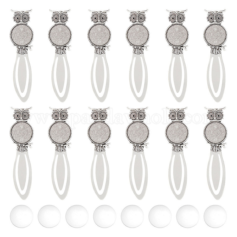 12шт. Сова тибетский стиль сплав закладки кабошон оправы, с круглым подносом и подходит для стразов, без кадмия и без свинца, с 12 стеклянными кабошонами