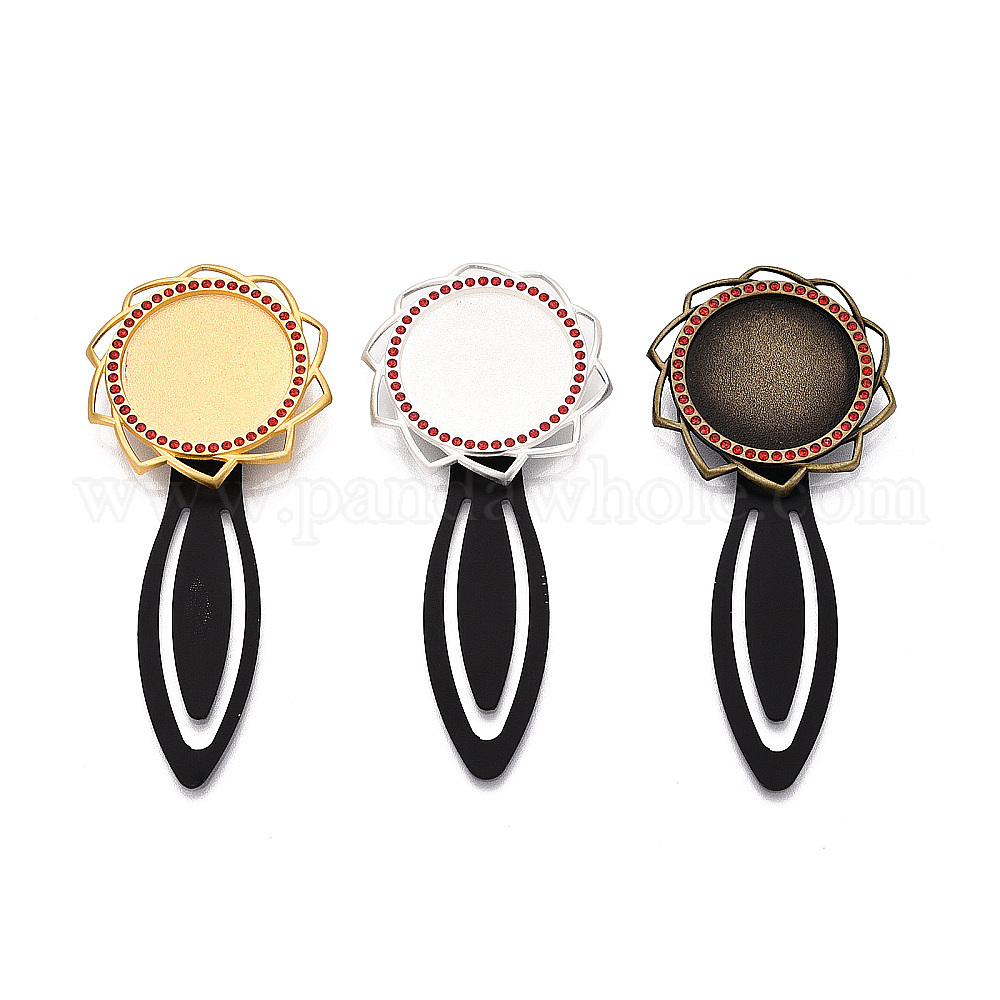 • Античная Бронза Закладки из сплава и железа, с плоским круглым вращающимся подносом и стразами, античная бронза, 82~83x37x5.5~6 мм, Размер лотка: 25 мм