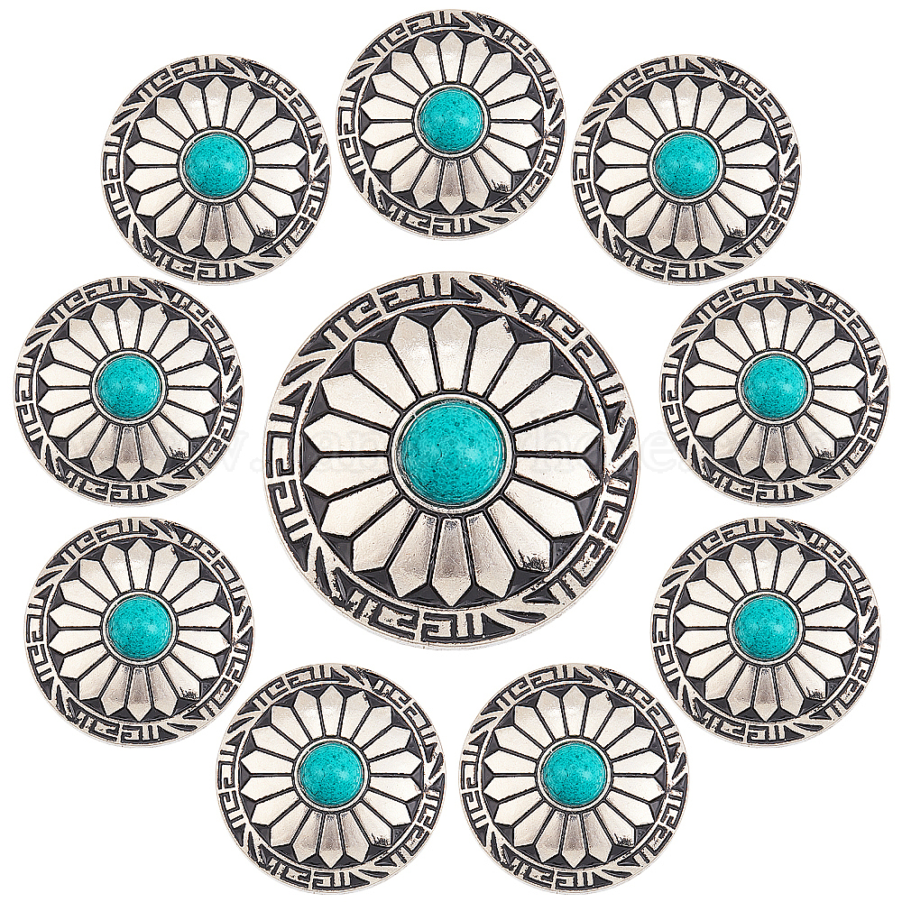 10шт 1-отверстие сплав и бирюзовые декоративные заклепки, плоский круглый с узором подсолнухов, для поделок багажа и аппаратных принадлежностей