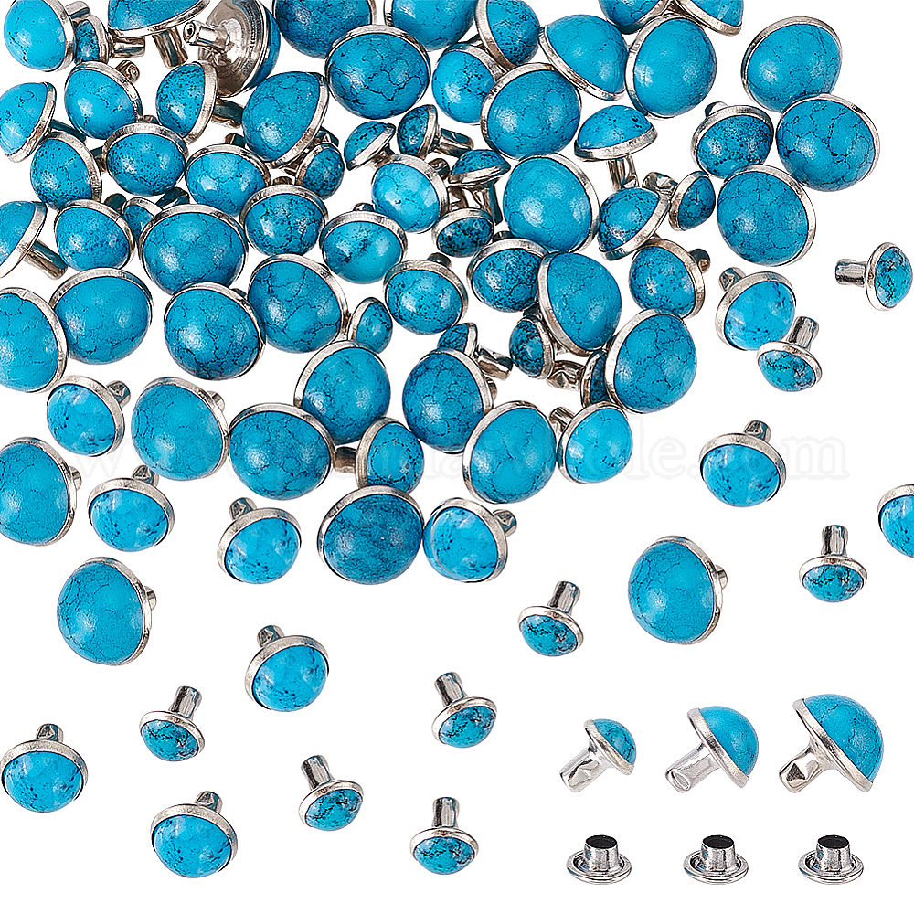 150 наборы 3 стиль пластиковая имитация бирюзовые заклепки для одежды, полукруглые заклепки из сплава и железа, для одежды сумка обувь кожаная поделка