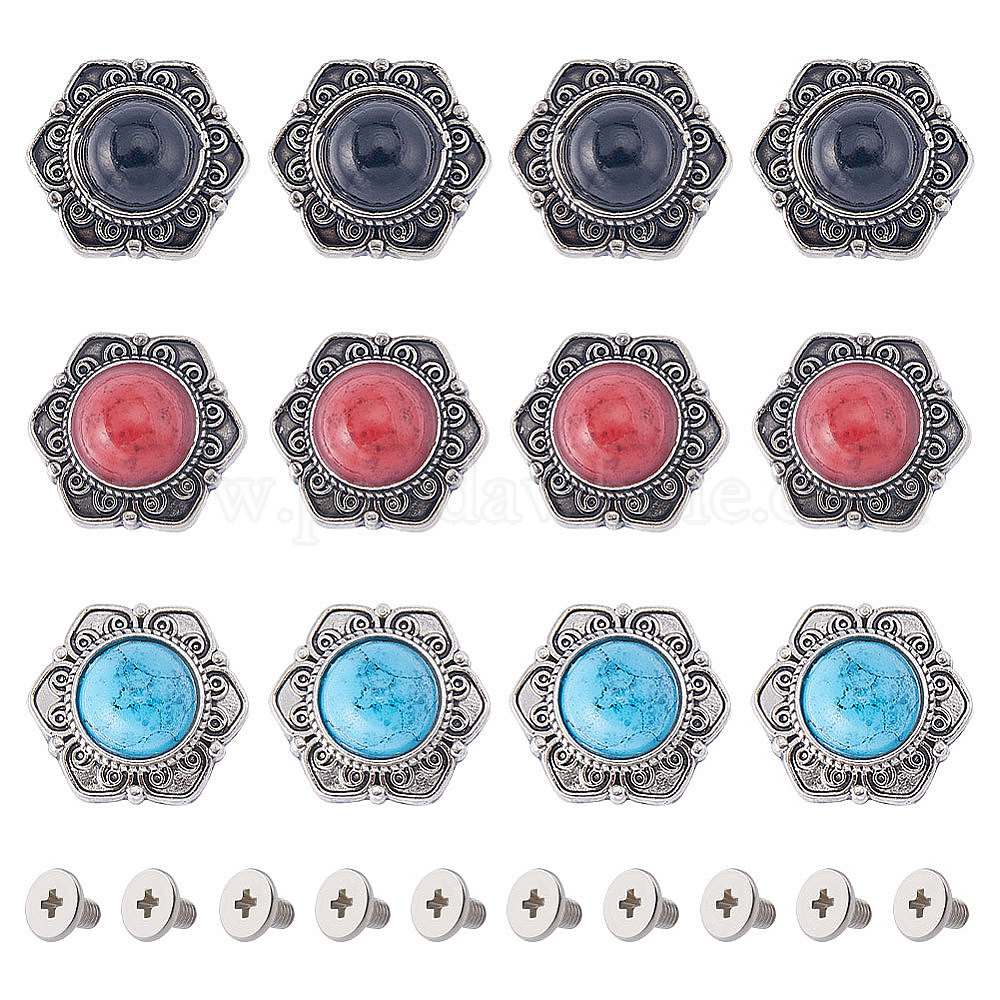 21 наборы 3 цвета сплава декоративные заклепки, с синтетической бирюзой и железными винтами, для кошелька, , украшение кожаных ремесел, цветок