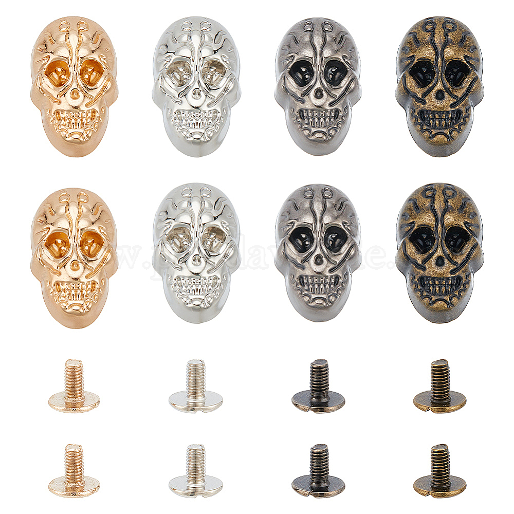 8 наборы 4 цвета череп сплав заклепки набор, с железным винтом, для кошелька сумка обувь панк-рок кожаный ремесленный ремень для одежды