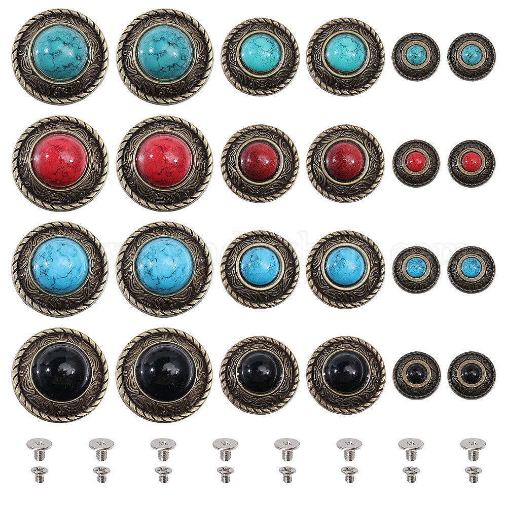 12 заклепка из сплава в стиле ремесла, с пластиковой имитацией бирюзы и железным винтом, DIY кожаный гвоздь, плоско-круглые