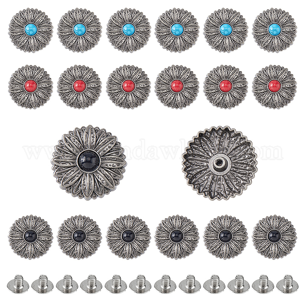 18 наборы 3 цвета сплава декоративные заклепки, с синтетическими бирюзовый