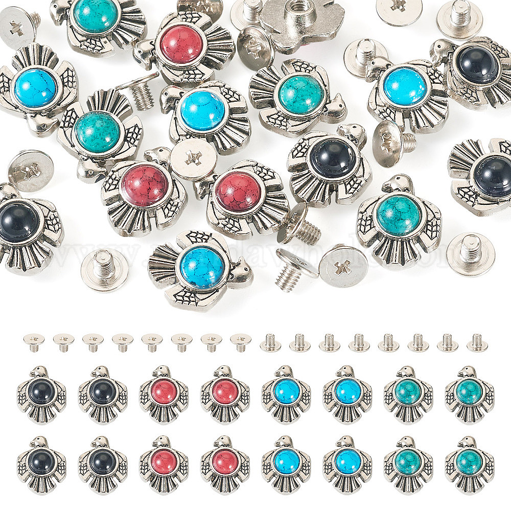 16наборы 4цветные заклепки из сплава для монет с винтовой заклепкой, с пластиковой имитацией бирюзы, для одежды сумка обувь кожаная поделка, античное серебро (031HBQ)