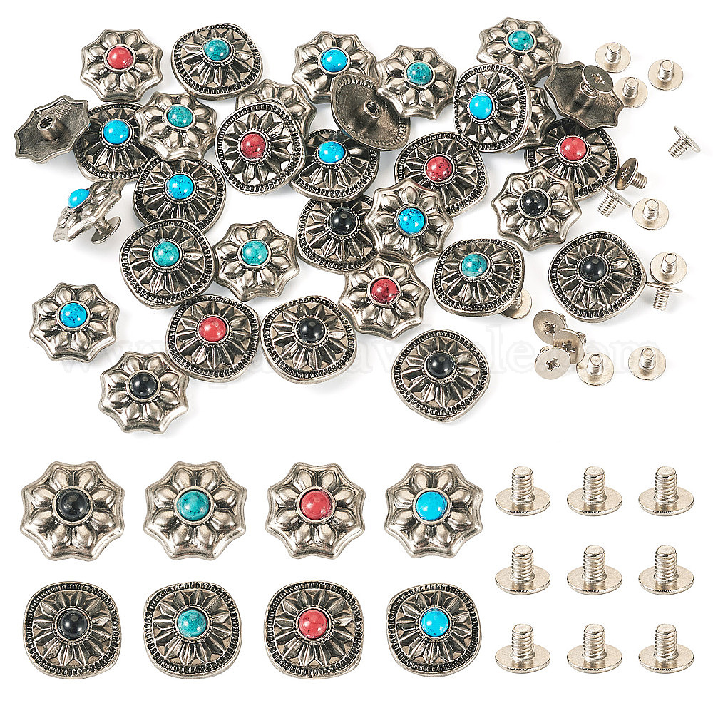32 шт. декоративные заклепки из античного серебряного сплава, с имитацией бирюзы и винтом, для кошелька, , украшение кожаных ремесел, цветок