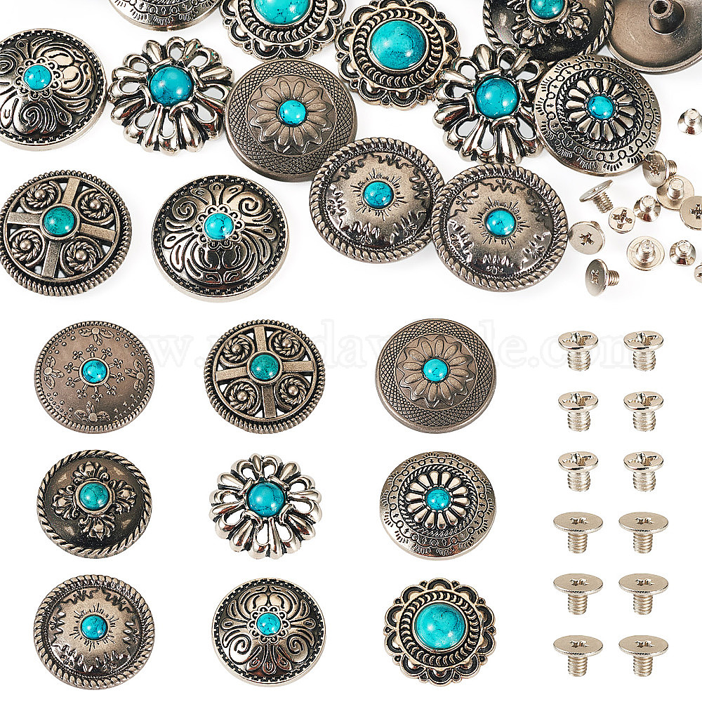 Декоративные заклепки из цинкового сплава, с синтетической бирюзой и железными винтами, для кошелька, , украшение кожаных ремесел (032QT6)
