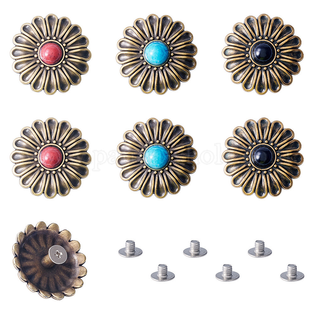 6 шт. 3 цвета хризантемы сплав со смоляными декоративными заклепками, для кошелька, , украшение кожаных ремесел, античная бронза
