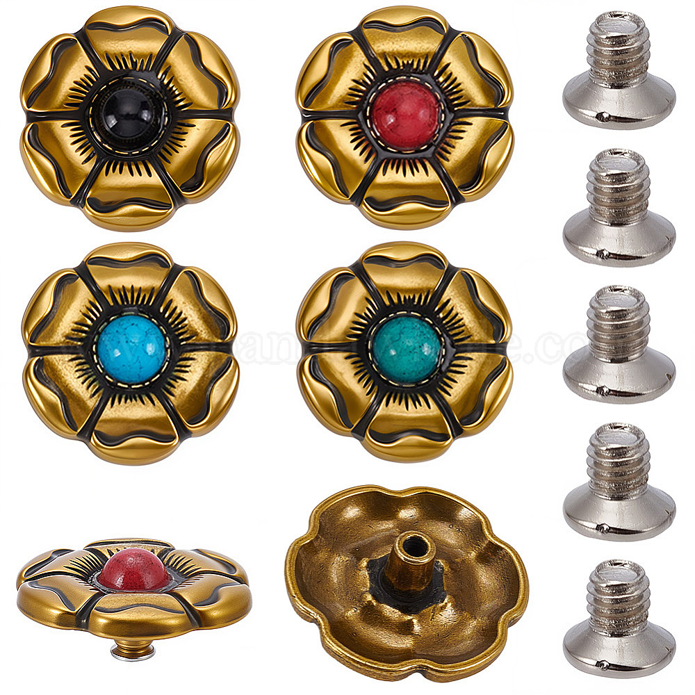 8 шт. 4 цветные пуговицы из сплава и пластика, плоские круглые с цветочным узором, для поделок багажа и аппаратных принадлежностей, античное золото
