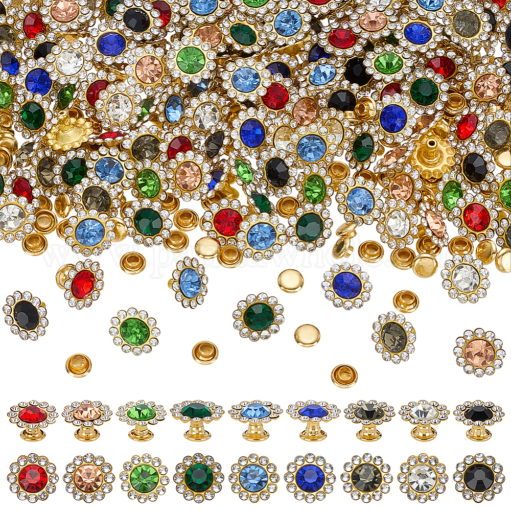 162 шт. 9 цвета латунные заклепки со стразами, полукруглые заклепки, заклепки столкновения, цветок, золотые