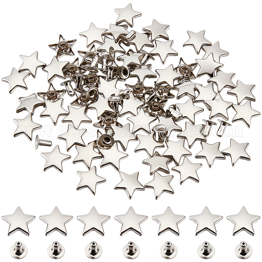 • Платина 100шт. железные полутрубчатые заклепки, звезда, для кошелька, , ботинки, украшение кожаных ремесел, платина, 11x11.5x3.5 мм, отверстие : 2.3 мм