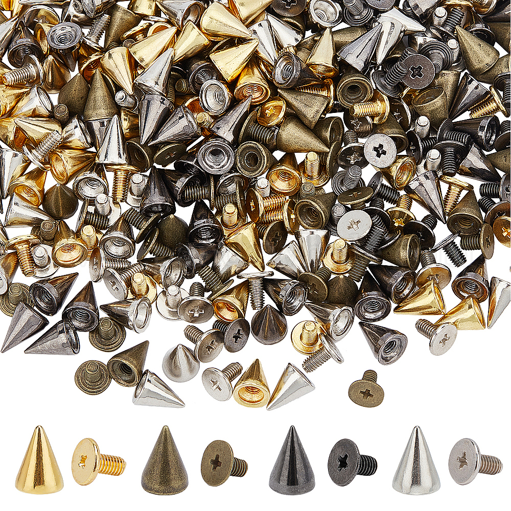 200 шт 4 цвета панк-сплав заклепки шпильки пирамидальные шипы, для украшения кожгалантереи своими руками