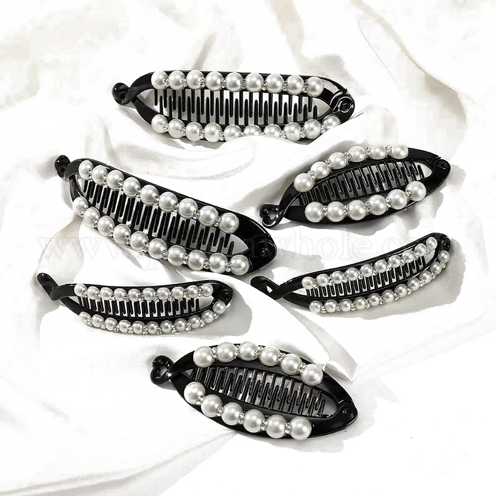 Пластиковые заколки для волос бананы с имитацией жемчуга, аксессуары для волос для женщин и девочек, со стразами (02W5HT)