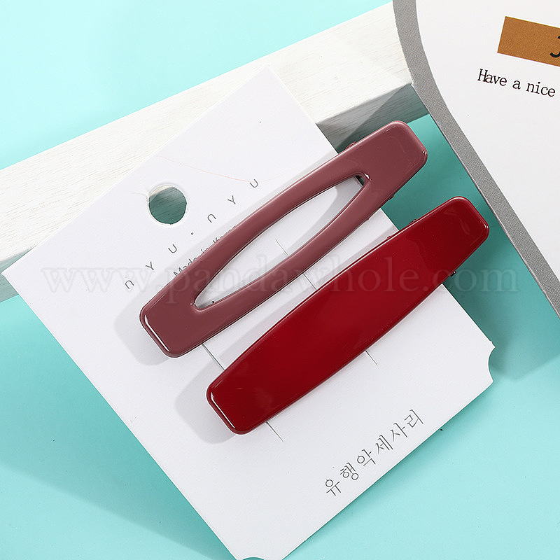 • Red and beige color Красочная заколка для волос с геометрическим вырезом, утконосом и пружиной для женской челки