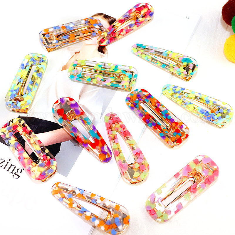 Заколка для волос с геометрическим квадратом и каплей — заколка для челки с цветочным рисунком, красочный зажим в виде утконоса, бб клип.