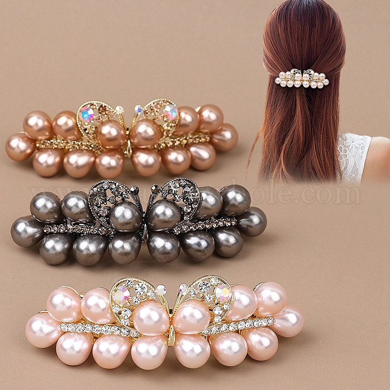 Заколки для волос из сплава со стразами, аксессуары для волос для женщин, с имитацией жемчужина бисера, бабочка