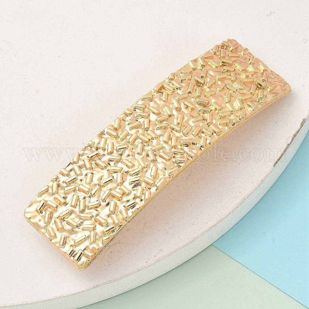 • Золотой Заколки для волос из сплава с текстурой прямоугольника, аксессуары для волос для женщин, золотые, 78.5x25x11.5 мм