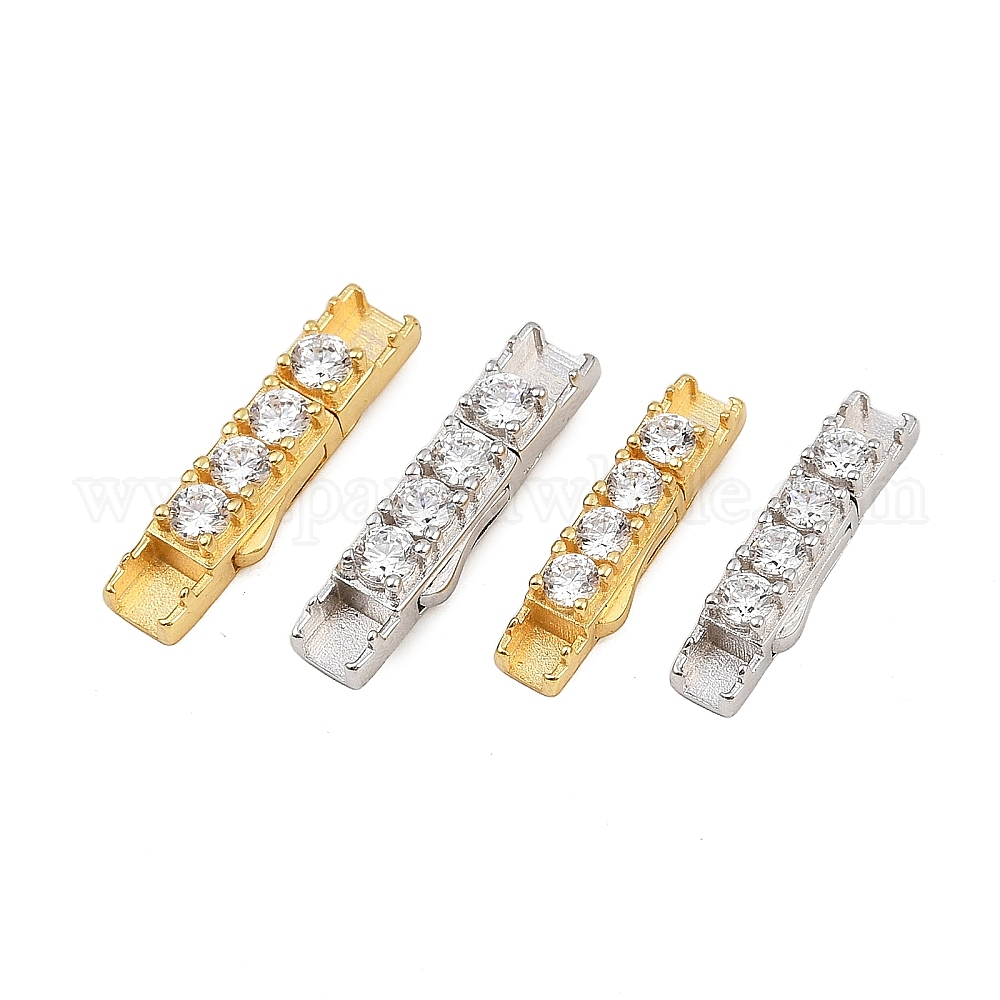 925 стержневые застежки из стерлингового серебра с микропаве и прозрачным фианитом, прямоугольные, плоское отверстие