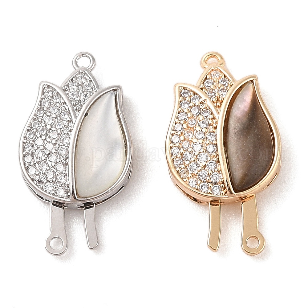 Латунные застежки-ракушки с микропаве и прозрачным кубическим цирконием, без кадмия, без никеля и без свинца, цветок