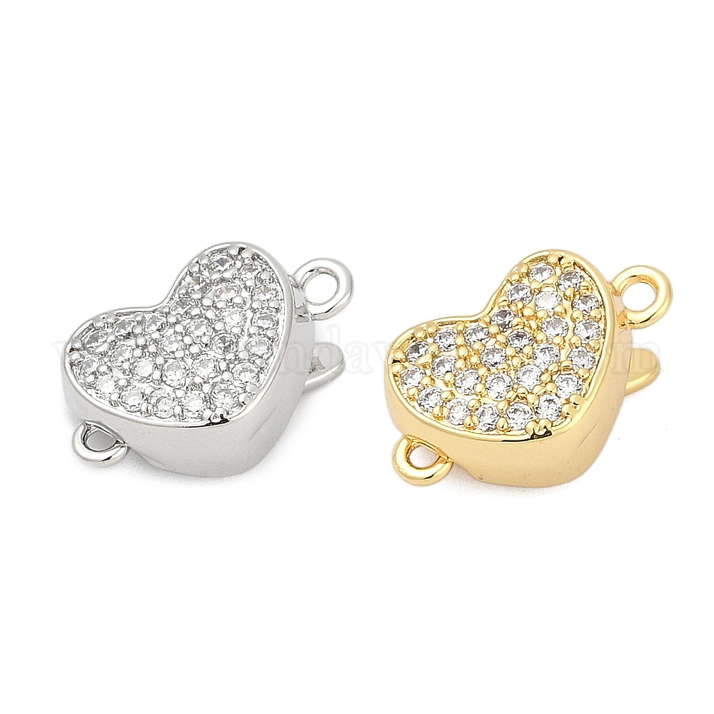 Латунные застежки из прозрачного кубического циркония с микропаве, без кадмия, без никеля и без свинца, сердце