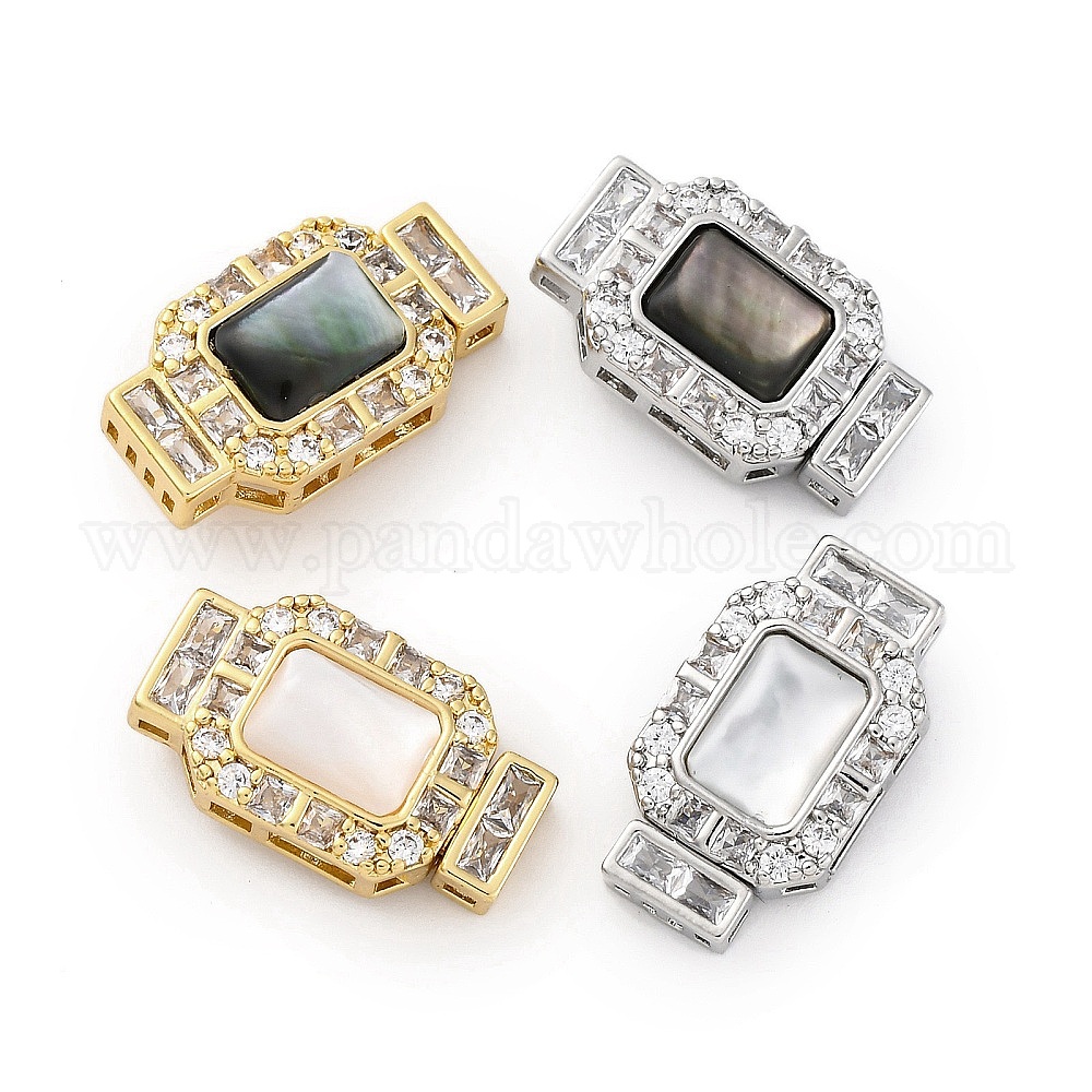 Прямоугольные застежки-коробочки из латуни с микропаве из прозрачного кубического циркония, без кадмия, без никеля и без свинца, с белой и черной оболочкой