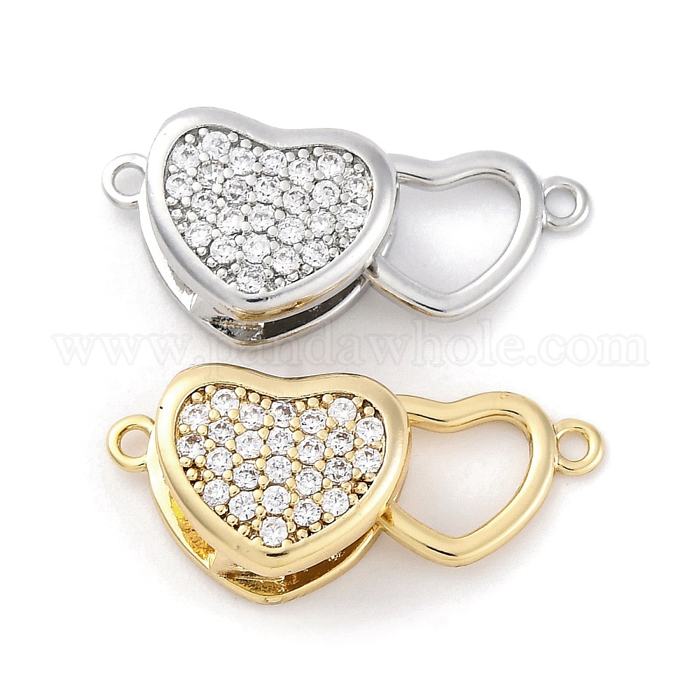 Латунные застежки из прозрачного кубического циркония с микропаве, без кадмия, без никеля и без свинца, сердце