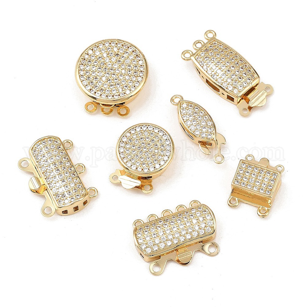 Латунные застежки из прозрачного кубического циркония с микропаве, многожильные застежки, без свинца и без кадмия, долговечный, стойки покрытие, реальный 18 k позолоченный