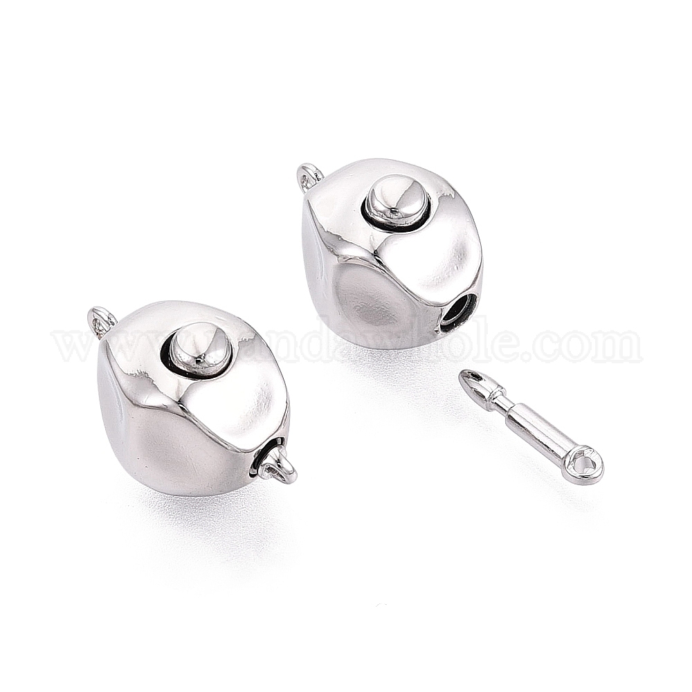• Платина Застежки латунные коробки, самородки, 1 нитей, 2-луночное, платина, 19~20x11.5x10 мм, отверстие : 1.2~1.4 мм