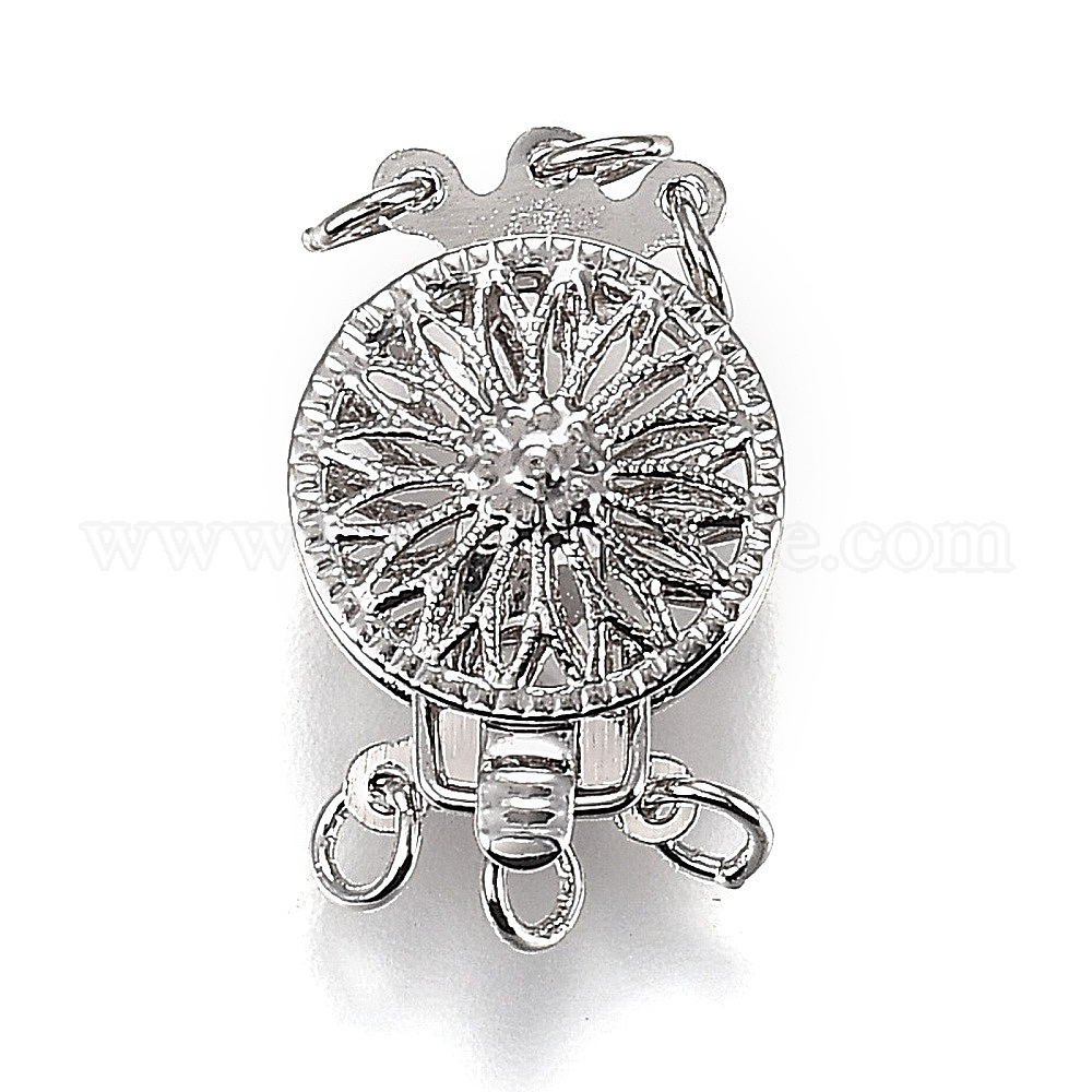 Застежки латунные коробки, многожильные застежки, 3-нити, 6 отверстия, плоские круглые с цветком