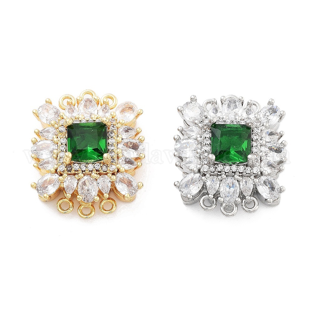 Латунные микро проложить кубического циркония магнитные застежки, без кадмия, без никеля и без свинца, со стеклом, прямоугольные, зелёные, 3 нитей, 6-луночное