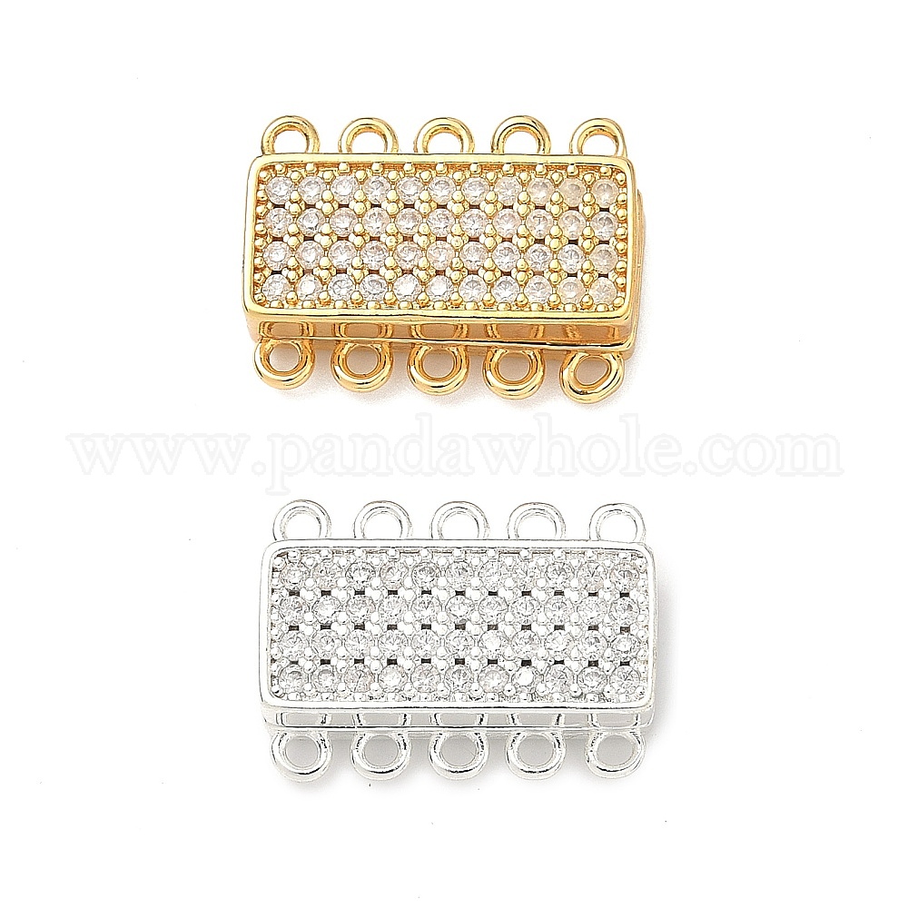 Магнитные застежки-защелки с микропаве из прозрачного кубического циркония из латуни, 5 нитей, 10-луночное, прямоугольные