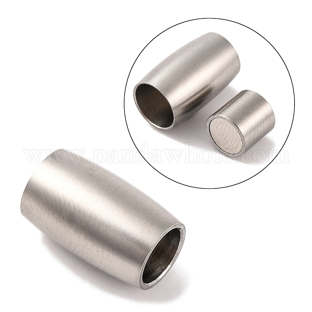 Матовый 304 магнитные застежки из нержавеющей стали с клеевыми концами, баррель, 14x9 мм, отверстие : 6 мм