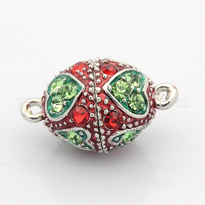 Овальные магнитные застежки из сплава эмали с платиновым напылением и петлями, со стразами классом a , 23x14 мм, отверстие : 2 мм