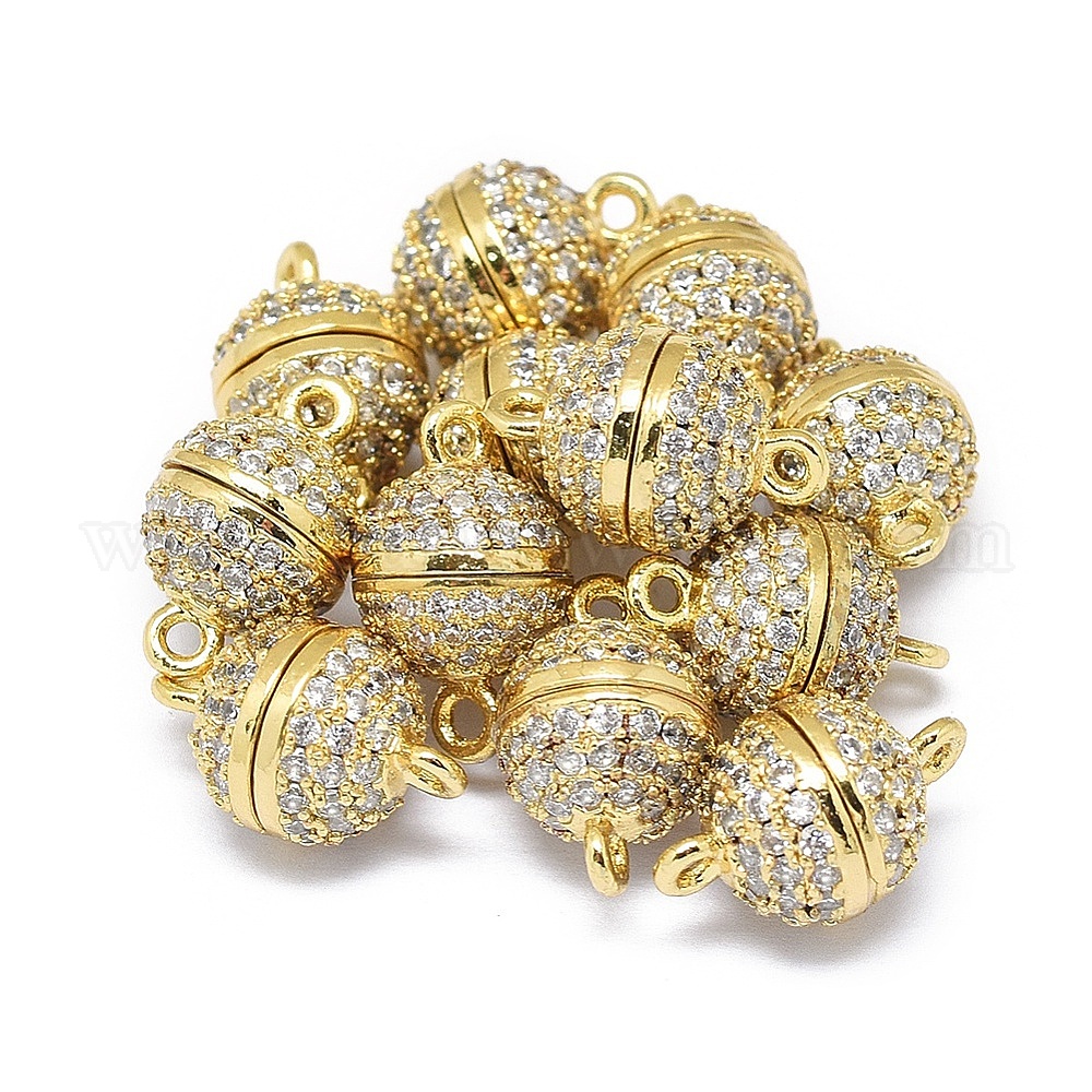 Реечное покрытие латунь micro pave кубический цирконий магнитные застежки с петлями, сильный магнит n 45, долговечный, круглые