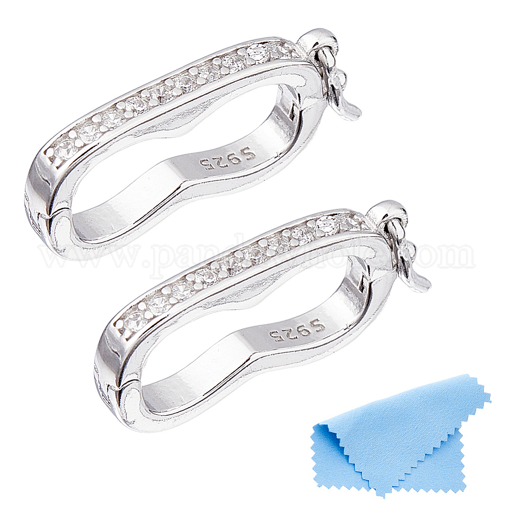 2 шт. платиновое покрытие 925 застежки-крутилки из стерлингового серебра со стразами, с печатью 925, 1Замшевая ткань из ПК, квадратная салфетка для полировки серебра