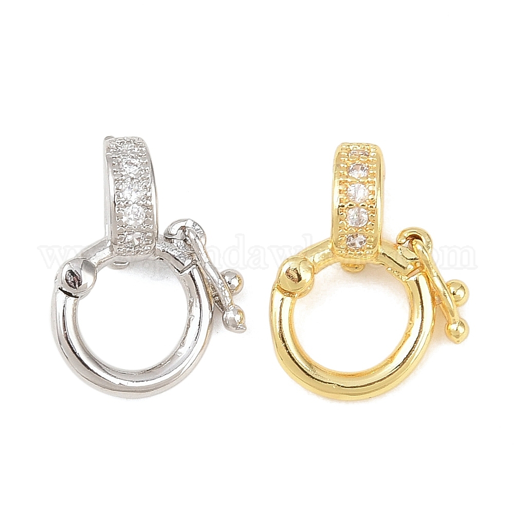 • Настоящее золото 18K Застежки-твистеры из латуни с микропейвом и прозрачным фианитом, реальный 18 k позолоченный, 15x11x5 мм, отверстие : 4x3 мм, внутренний диаметр: 6 мм