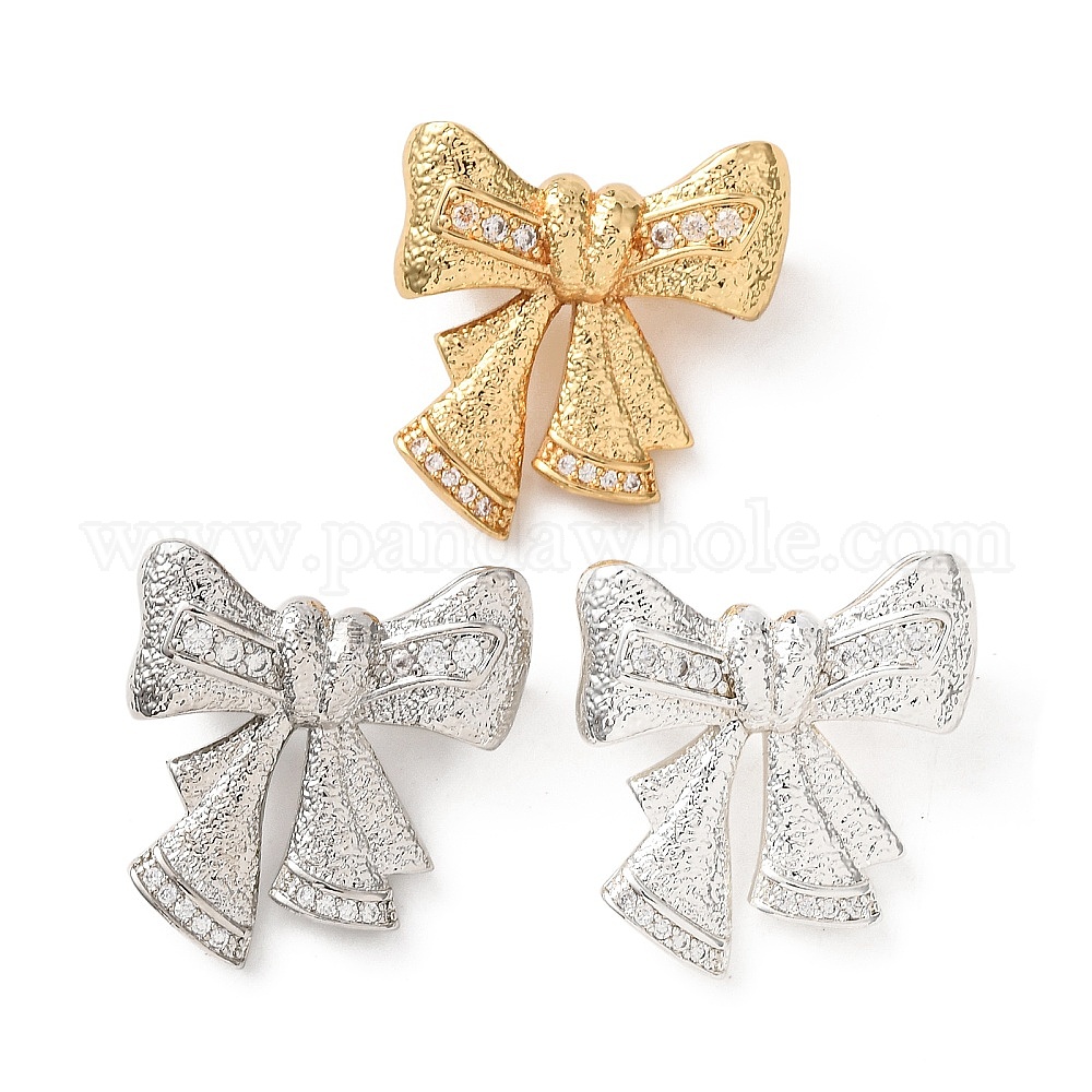 • Платина Латунные микро проложить кубического циркония Twister застежками, бантом, платина, 24.5x24x13 мм, отверстие : 1.8 мм