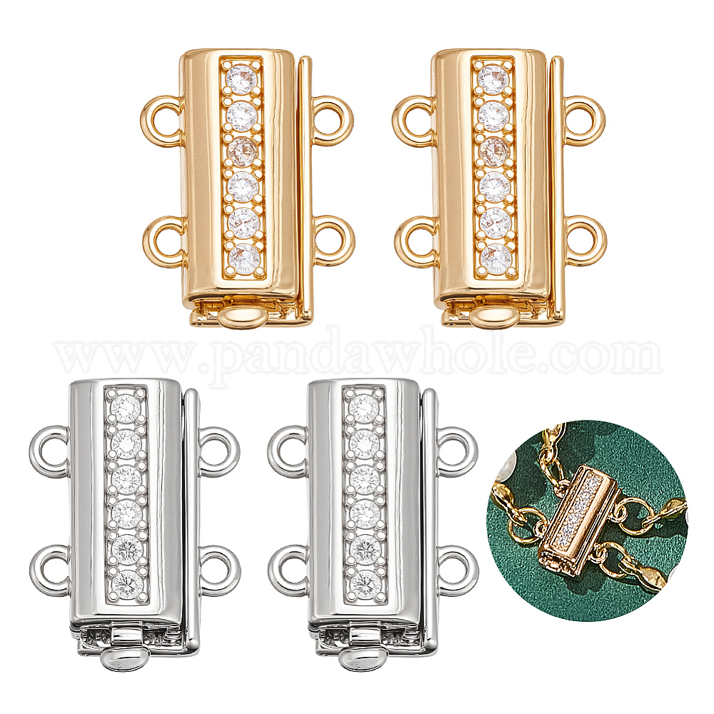 4шт. 2 цвета латунь микропаве прозрачный кубический цирконий застежки-слайдеры, 2 нитей, 4-луночное