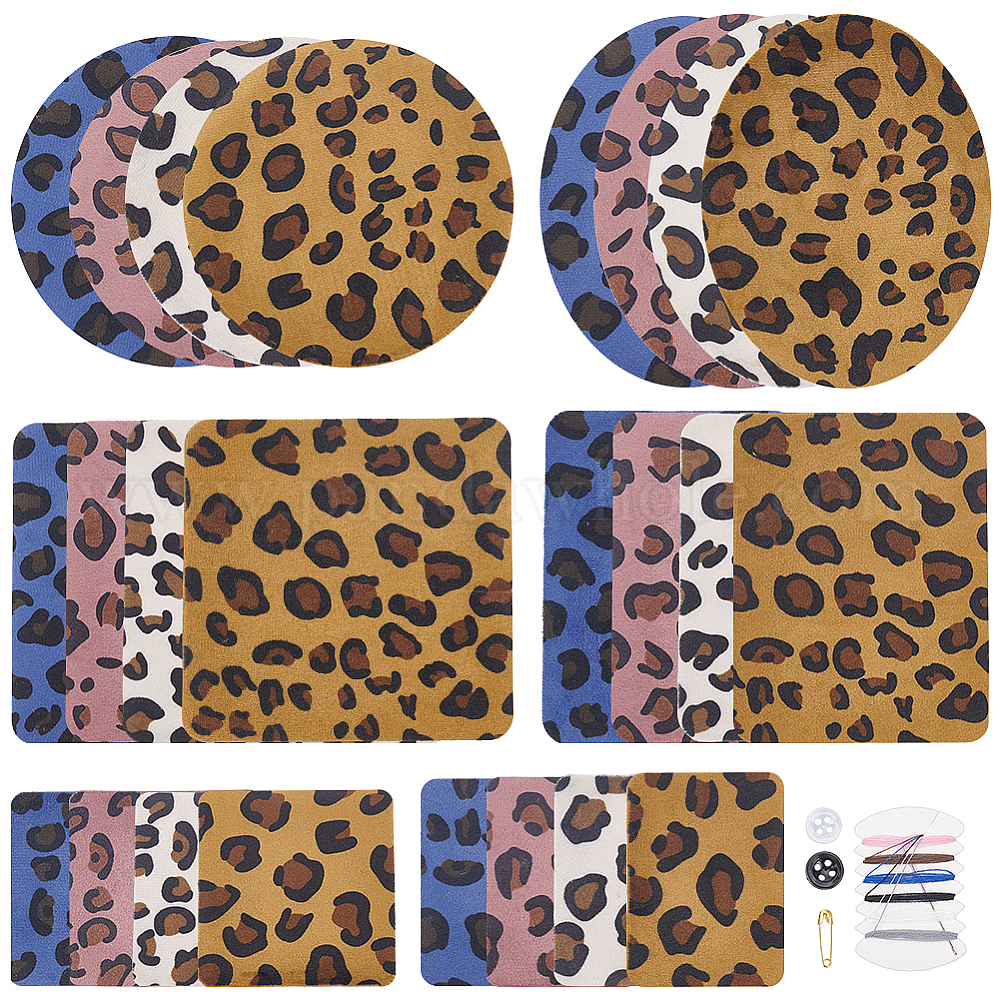 • (52) Непрозрачная лаванда Ткань с леопардовым принтом гладить/пришивать заплатки, пластырь для ремонта локтя и колена одежды, разнообразные, с иглой, нить, , английская булавка, разноцветные, патчи: 75~142x55~125x0.7 мм, 24 шт / комплект