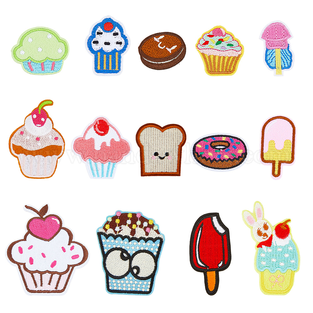 2 наборы 2 стильные полиэстеровые вышитые нашивки на одежду, с термоклеем, торт и хлеб и мороженое