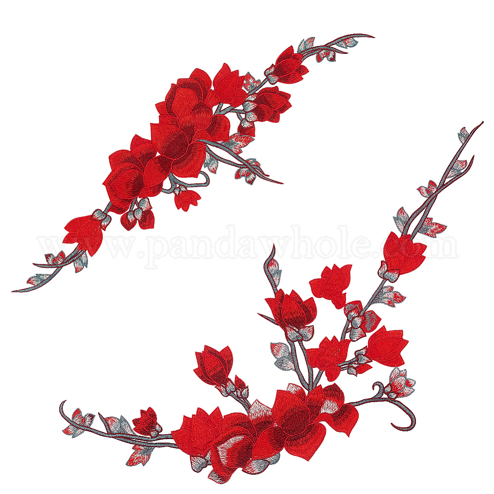 Цветочная полиэфирная вышивка утюгом/пришивка нашивок, аппликации из цветков сливы в этническом стиле, для украшения манжеты воротника, с клейкой спинкой