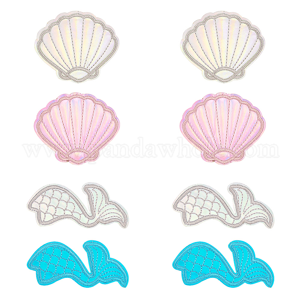 8шт 4 стиль вышитые нашивки на ткани, аппликация патч, швейные украшения, форма раковины и хвоста русалки (02FFXC)