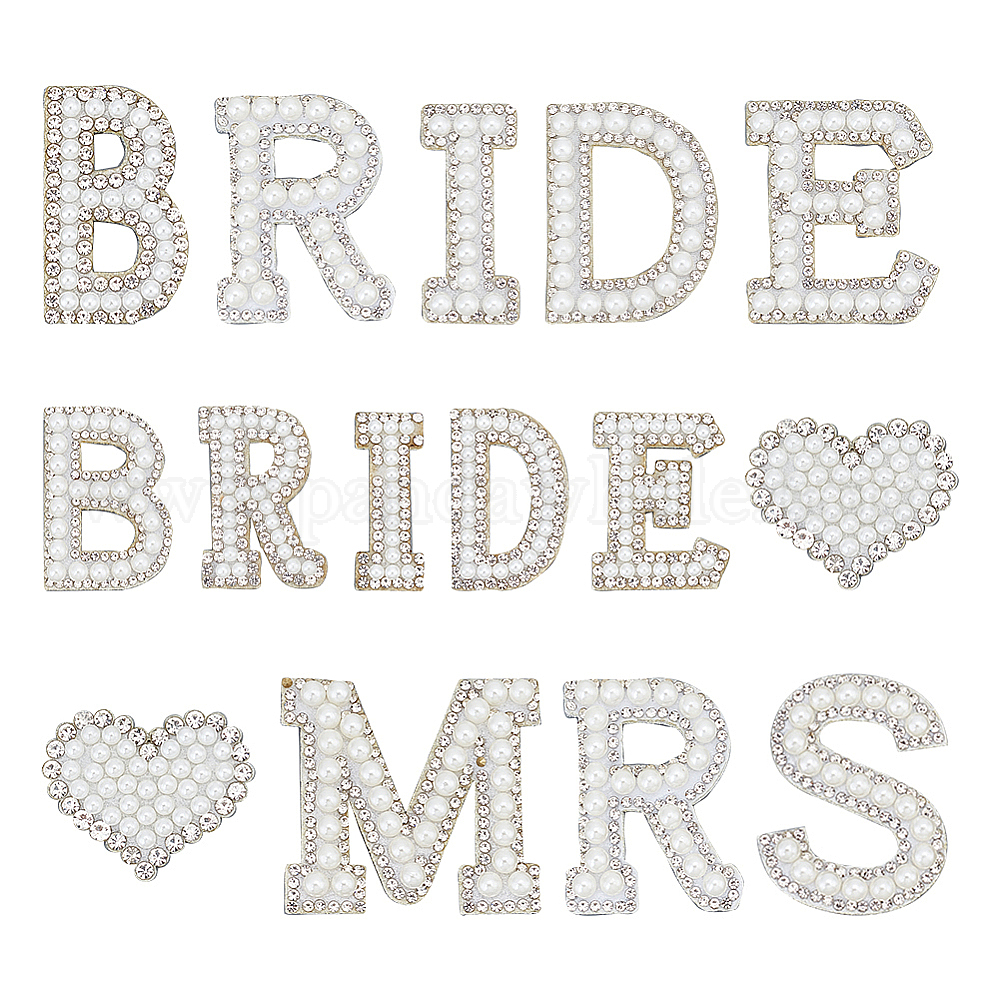Пластиковые бусины с имитацией жемчуга на аппликациях для свадьбы, с нетканого материала, сердце и слово невеста и буква.м/р/с