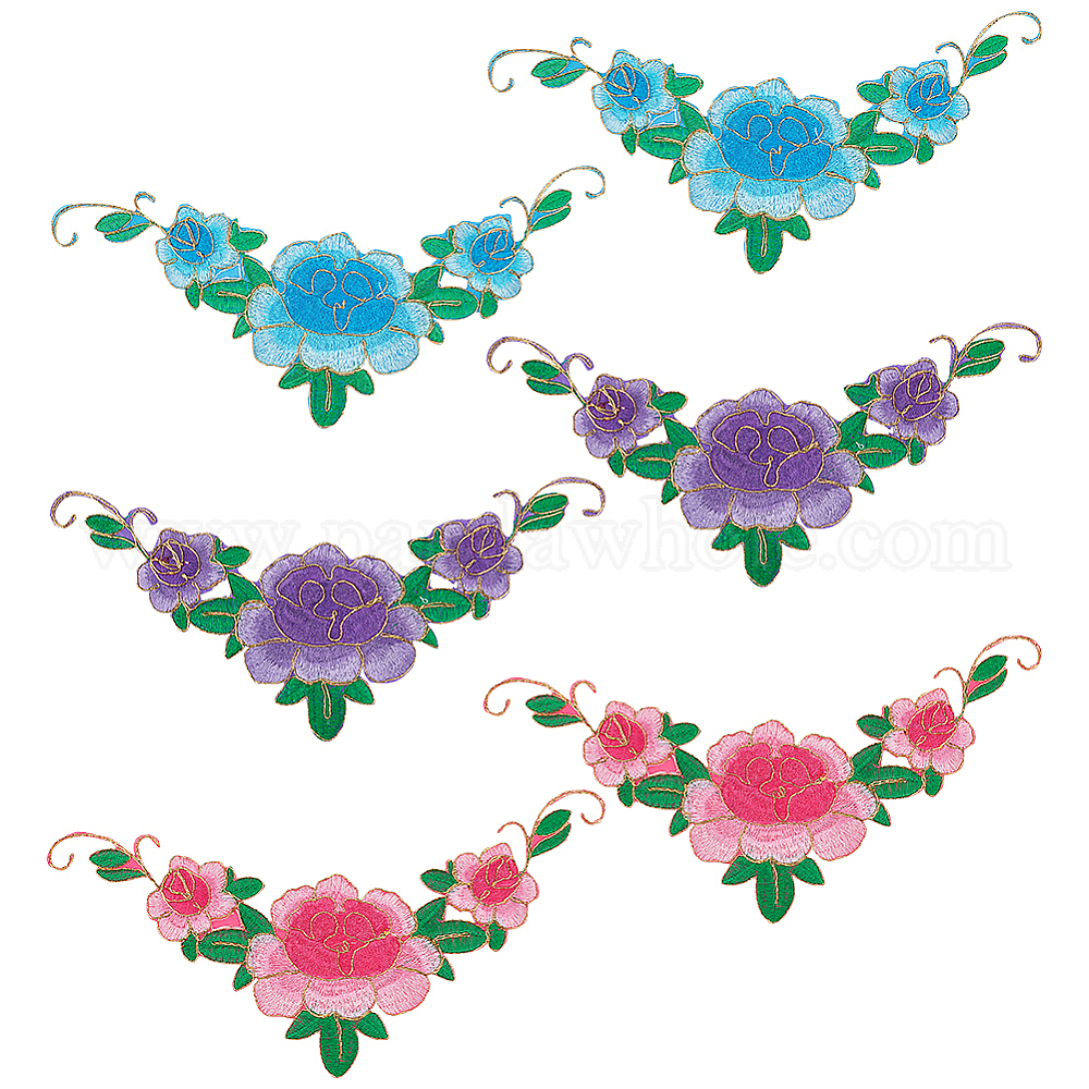 6 шт 3 цветной рисунок пиона ткань компьютерная вышивка утюгом/пришиванием заплатки, аппликации из золотой металлизированной нити, шеврон/v форма (02HG1P)